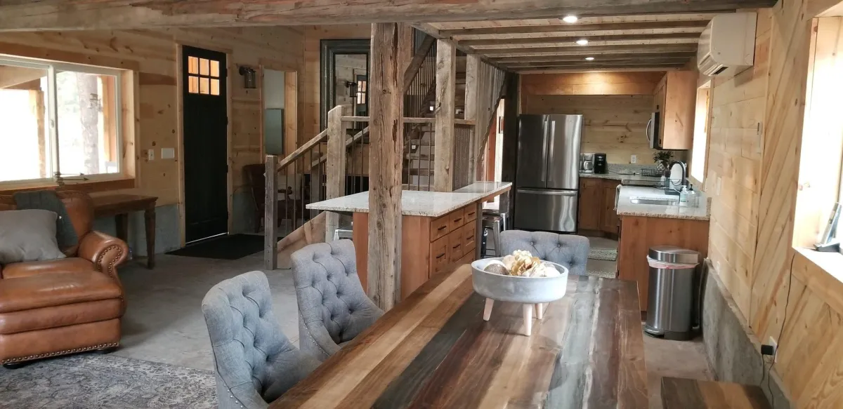 Inscriptions on the barn wall have been found and dated back to 1889. Some of the Boards for the barn walls are nearly 3 feet wide and 3 inches thick. Unfortunately the barn was built in a marshy area of ground and, due to age and wet conditions, became unsuitable for use. However, no one was willing to allow this majestic building to just disappear.
